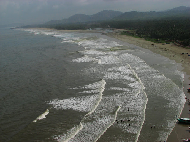 i guess we did a good thing by staying back at Murudeshwara otherwise we would have missed these beautiful views of the beach, the Shiva and the temple. then we moved on to Gokarna from there... reached Gokarna by around 12 in the afternoon, had lunch and headed to the beach.